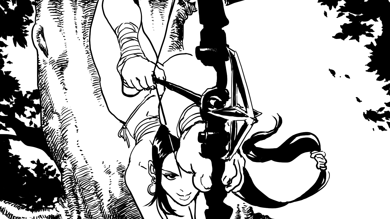 인체만 목적으로 그리고 나면 그냥 붕대로 때우는 게 개웃기네ㅋㅋㅋㅋㅋㅋ 붕대녀가 자캐가 될지도? 사실 '이 자세 그려야지' 하는 생각만 머릿속에 가득해서 배경이고 뭐고 아무것도 없이 시작한 그림이라... 그나마 철권 자피나 느낌 나니까 귀고리라도 해줬지만, 결국 자세와 활 이외에는 완전 무특징 그림이 나옴. 옷이라도 약간 흘러내리는 느낌으로 그려줬으면 좋았을 텐데. 만약 처음부터 완전히 이 복장이랑 나무를 떠올려서 그렸다면 아마 90%를 줬을지도 모르겠다. 그만큼 여태까지 그린 것 중에서는 그래도 가장 마음에 드네.